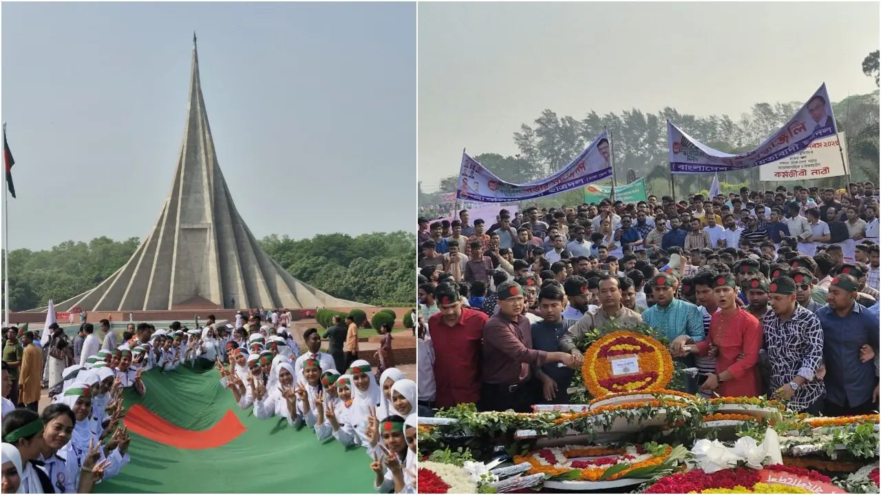 এর আগে ভোরে রাষ্ট্রপতি ও প্রধানমন্ত্রী জাতীয় স্মৃতিসৌধে পুষ্পস্তবক অর্পণের মাধ্যমে শ্রদ্ধা নিবেদন করেন। এ সময় বিউগলের করুণ সুরে বেজে ওঠে শোকের আবহ, সশস্ত্র বাহিনীর একটি চৌকস দল গার্ড অব অনার প্রদান করে এবং নীরবতা পালনের মধ্য দিয়ে শহীদদের স্মরণ করা হয়।