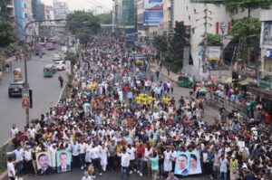 বুধবার বিকালে রাজধানীর সাইন্সল্যাবস্থ সিটি কলেজের সামনে থেকে তিনি শহরের প্রধান সড়কগুলোতে বিশাল শোভাযাত্রার নেতৃত্ব দেন।প্রচারণায় অংশ নেন হাজারো নেতাকর্মী, সমর্থক ও সাধারণ ভোটার। এসময় এলাকাজুড়ে সৃষ্টি হয় উৎসবমুখর পরিবেশ—ব্যানার, ফেস্টুন, ও স্লোগানে মুখরিত হয়ে ওঠে পুরো এলাকা।