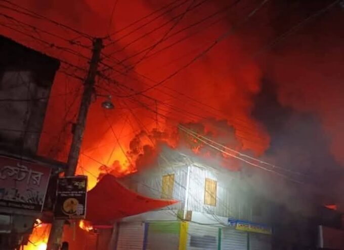 মাদারীপুর পুরান বাজারে ভয়াবহ অগ্নিকাণ্ডের ঘটনায় ১৯ টি দোকান পুড়ে ছাই