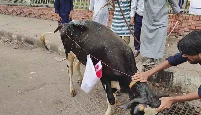 মার্চ ১৪, ২০২৫শাহবাগীবিরোধী ঐক্যের আয়োজনে শাহবাগে একটি গরু আনা হয়েছে। সেই গরুকে গোসল করানো হয়েছে। বৃহস্পতিবার (১৩ মার্চ) সকালে জাতীয় জাদুঘরের সামনে এ কর্মসূচি পালন...